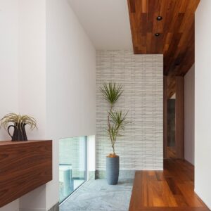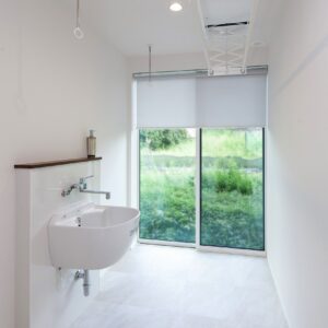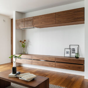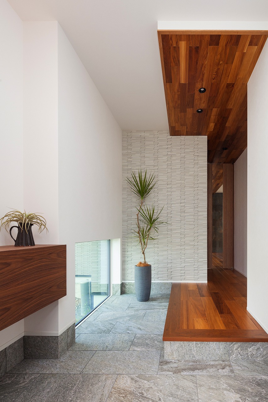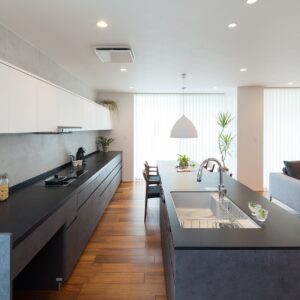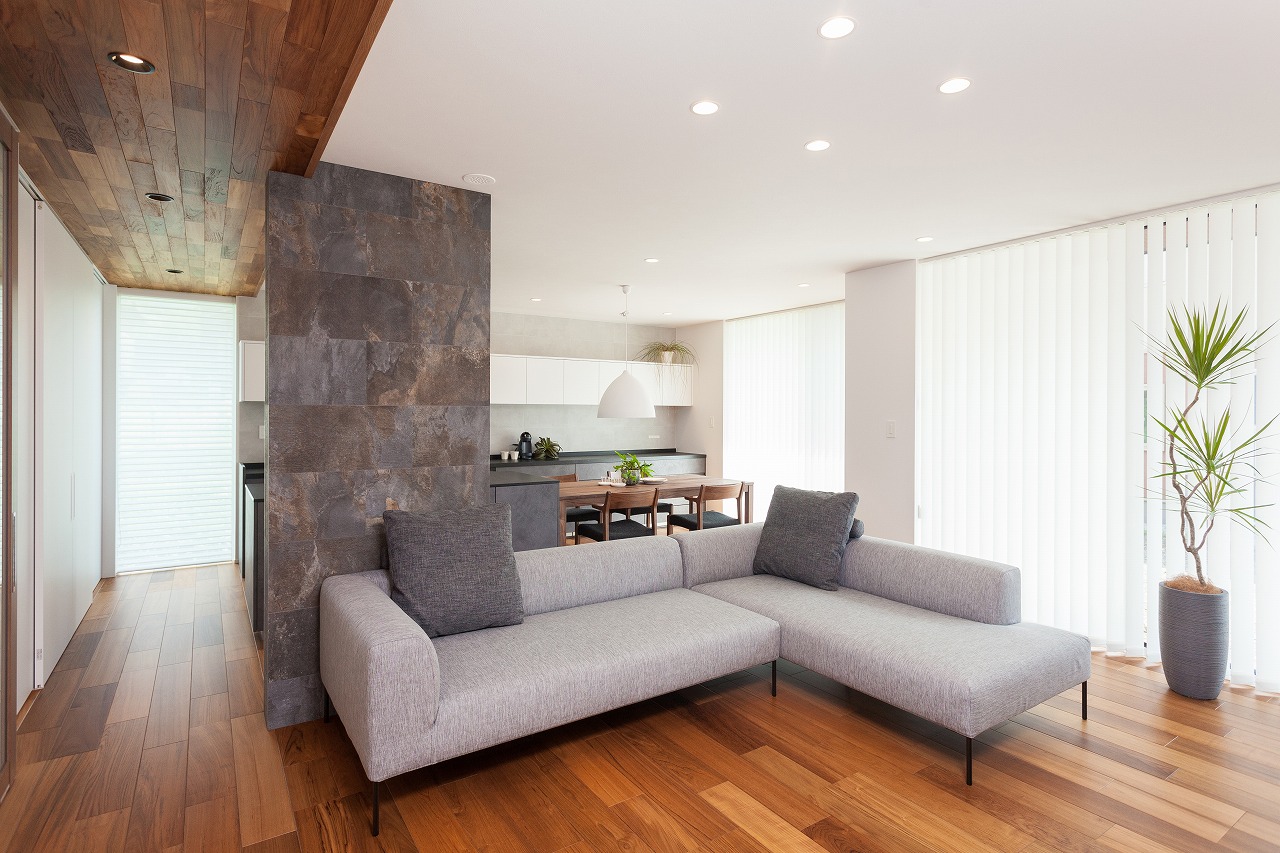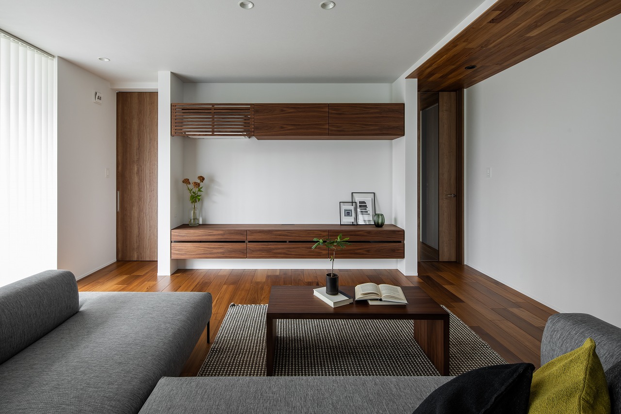 「家族動線」と「来客動線」を完全に分け、「家族動線」には歩く動線上に必要な収納や水回りを配置しました。「来客動線」は入った瞬間から「見せる工夫」をしたワンランク上の空間を演出しています。 リビングに光をたくさん取り入れる大開口の窓を設置することで、中と外の空間が一体につながります。 キッチンは家事動線が1番短いセパレートキッチンを採用、作業スペースも広く、使いやすさを追求しました。